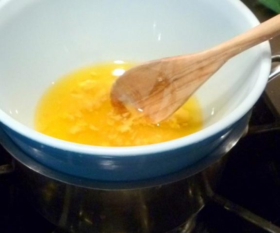 - Τοποθετήστε όλα τα συστατικά σε ένα δοχείο και βάλτε σε ένα λουτρό νερού.