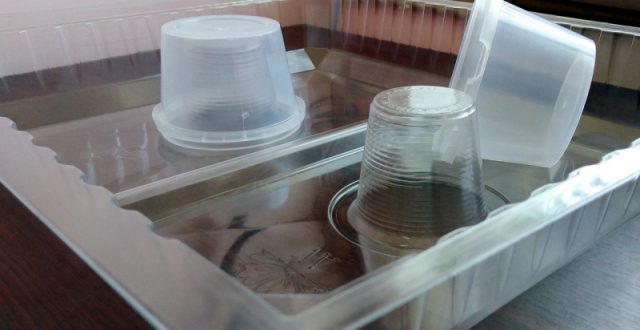 Τα γυάλινα δοχεία μπορούν να αντικατασταθούν με επιτυχία από δοχεία. Η αρχή της δημιουργίας τροφοδοσίας είναι η ίδια. Θα χρειαστείτε την ίδια γάζα σε 8 στρώσεις. Μερικές φορές τα δοχεία κασσίτερου έρχονται με καπάκια από νάιλον. Μπορούν να χρησιμοποιηθούν αντί για γάζα, τρυπώντας πολλές μικρές τρύπες με ένα κουκουβάγια.