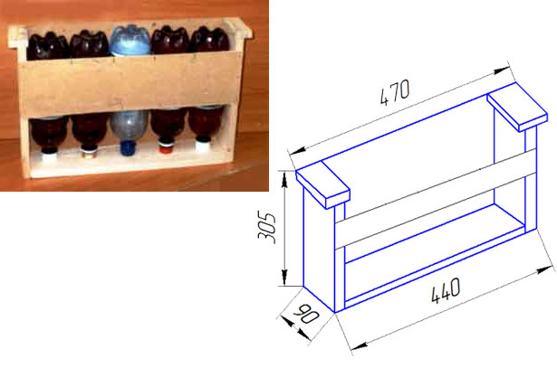 Η φωτογραφία εμφανίζει σχέδια για τον τροφοδότη μελισσών, αλλά πρέπει να υπολογίσετε τις δικές σας διαστάσεις ανάλογα με τις διαστάσεις της κυψέλης. Πρώτα, επιλέγονται 4-5 πανομοιότυπες φιάλες, μετράται η διάμετρος τους. Σύμφωνα με τις μετρήσεις που πραγματοποιήθηκαν, καθορίζεται το πάχος της κασέτας. Τα κουτιά συναρμολογούνται από κόντρα πλακέ ή λεπτές λωρίδες.