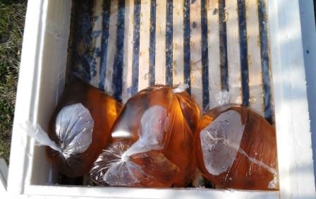 - Πολυαιθυλένιο μιας χρήσης. Ο τροφοδότης είναι μια συνηθισμένη σακούλα γεμάτη με σιρόπι και δεμένη με έναν κόμπο στην κορυφή. Τοποθετήστε τα στο κάτω μέρος της κυψέλης ή στο πάνω μέρος των πλαισίων. Αντί για σιρόπι, φαρμακευτικά διαλύματα για τη θεραπεία των μελισσών μπορούν να χυθούν στη σακούλα. Επιπλέον - απλότητα, χαμηλό κόστος, διαθεσιμότητα στο πεδίο. Μείον - ταχεία ψύξη του χυμένου διαλύματος.