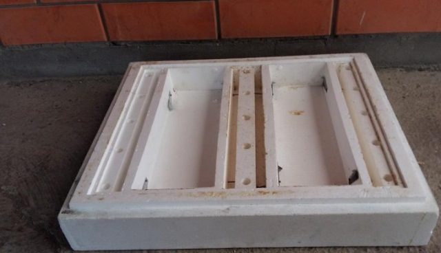 Ένας κύκλος κόβεται από την πλάκα αφρού με ένα κοφτερό μαχαίρι. Σε διάμετρο, πρέπει να ταιριάζει σφιχτά στο λαιμό του δοχείου σε σχήμα κώνου. Μια τρύπα πάχους 7 mm τρυπά στο κέντρο του δίσκου αφρού και κόβονται αυλακώσεις από έξω. Στις πλευρές του δίσκου, κόβονται 4 ακόμη αυλακώσεις με βάθος 5 mm. Το σιρόπι χύνεται στον κώνο. Το δοχείο κλείνει με αφρώδες δίσκο. Ένα ύφασμα chintz τραβιέται από ψηλά και ο κώνος αναποδογυρίζεται. Εάν το σιρόπι ρέει γρήγορα μέσω του υφάσματος, προσθέστε άλλα 1-2 στρώματα μέχρι να ξεκινήσει η ομοιόμορφη κατανομή. Ο τροφοδότης στερεώνεται μέσα στην κυψέλη με αυλακώσεις κομμένες στο πλάι του δίσκου αφρού.