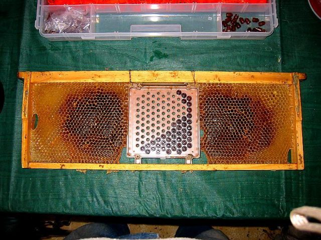 - Κορνίζες με τυπωμένο γέννα και επωασμένες μέλισσες λαμβάνονται από μια αποικία μελισσών που αφήνεται χωρίς βασίλισσα. Μεταφέρονται 1 κομμάτι σε κάθε διαμέρισμα του Rochefus. Συμπλήρωμα με 1 πλαίσιο τροφοδοσίας. Ένα ώριμο μητρικό φυτό προστίθεται στα κουφώματα. Ο ολοκληρωμένος πυρήνας επιστρέφεται στο σώμα της κυψέλης με την κύρια οικογένεια των μελισσών.Σπουδαίος! Κατά την εγκατάσταση του Rochefus, η βασίλισσα του εμβρύου πρέπει να απουσιάζει από το κύριο σώμα της κυψέλης. Διαφορετικά, οι νέες βασίλισσες θα καταστραφούν.