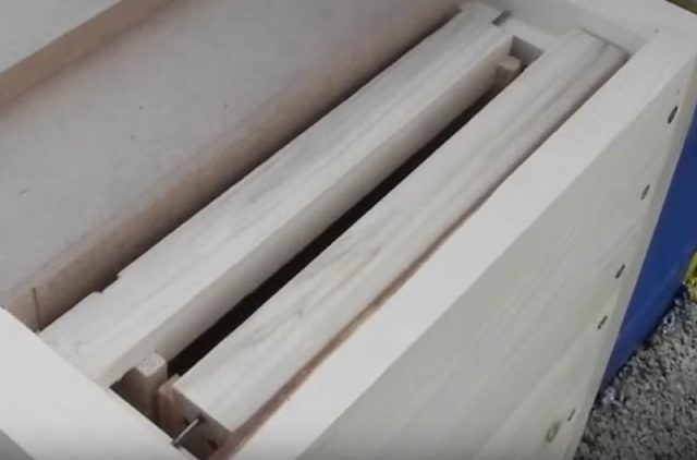 - Στο εσωτερικό, το κουτί είναι εξοπλισμένο με συνδετήρες για πλαίσια, έναν τροφοδότη. Γίνεται ένα κάλυμμα. Κόβονται τρύπες για κάθε διαμέρισμα. Η μέγιστη διάμετρος οπών είναι 15 mm.