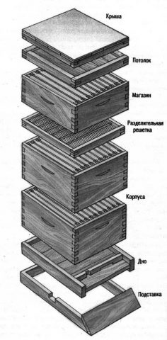 - Τοποθετώντας κάθε σώμα το ένα πάνω στο άλλο, μειώνεται ο χώρος που καταλαμβάνεται από το μελισσοκομείο. Τις περισσότερες φορές, οι μελισσοκόμοι συλλέγουν κυψέλες 4 κουτιών, αλλά μπορεί να υπάρχει διαφορετικός αριθμός βαθμίδων.
