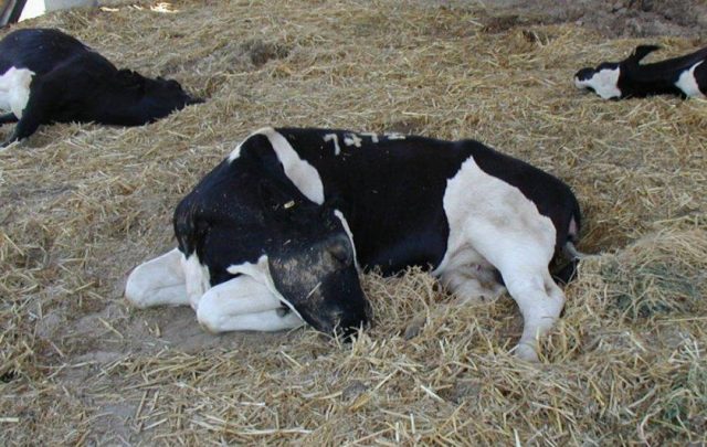 - ισχυρή υπερθέρμανση ή υποθερμία του σώματος του ζώου (αυτό είναι ιδιαίτερα χαρακτηριστικό για τα μοσχάρια).