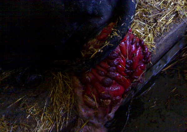 Η πρόγνωση εξαρτάται από το πόσο καιρό η μήτρα βρίσκεται έξω από την αγελάδα και τον βαθμό βλάβης του βλεννογόνου. Στον αέρα, το όργανο διογκώνεται πολύ γρήγορα. Η βλεννογόνος μεμβράνη έχει υποστεί βλάβη στα τοιχώματα του πάγκου, στο πάτωμα και σε άλλα γύρω αντικείμενα. Όσο μεγαλύτερη ζημιά, τόσο χειρότερη είναι η πρόγνωση.