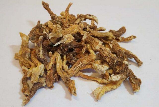 - ρίχνουμε μια μικρή κουταλιά σκόνης από τις ξηρές ρίζες του φυτού.