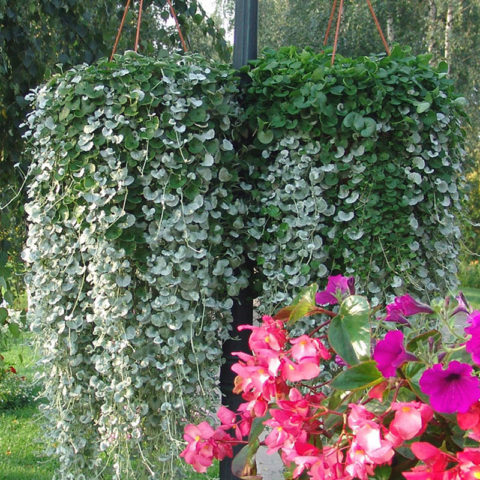 Το Dichondra συνδυάζεται αρμονικά με φούξια, πετούνια, μπεγκόνια, λοβία. Δημιουργεί ένα εντυπωσιακό υπόβαθρο για αυτούς.