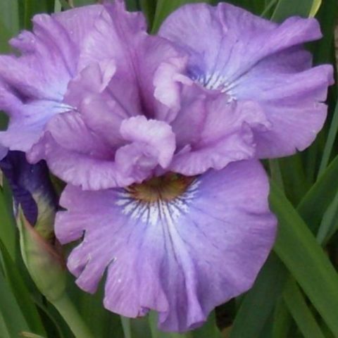Το Hybrid Ruffled Plus (tousled) είναι μέλος της ομάδας ποικιλιών ίριδας της Σιβηρίας. Πρόκειται για έναν μεσαίου μεγέθους συμπαγή θάμνο με ύψος 65-70 cm, πλάτος 40 cm, με μακριά, στενά, φωτεινά πράσινα φύλλα. Τα κάτω πέταλα είναι στρογγυλεμένα, τα εσωτερικά είναι επιμήκη, με κυματιστές άκρες. Χρώμα λεβάντας με μωβ φλέβες και λευκό πυρήνα.