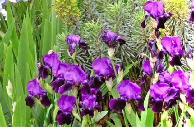 Μετά την περίοδο ανθοφορίας, τα στελέχη κλαδεύονται.Οι θάμνοι με πυκνό μακρύ φύλλωμα δίνουν τη διακόσμηση στο τοπίο. Μια δημοφιλής τεχνική διακόσμησης είναι η δημιουργία ιριδαρίων, παρτέρια σε αστική περιοχή ή σε προσωπικό οικόπεδο, φυτεμένο με διαφορετικές ποικιλίες φυτών.
