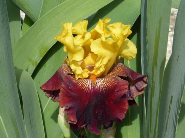Το Iris Barcelona έχει μεγάλα, γυαλιστερά φύλλα με γαλάζια άνθιση, τα οποία γίνονται καφέ μέχρι το φθινόπωρο