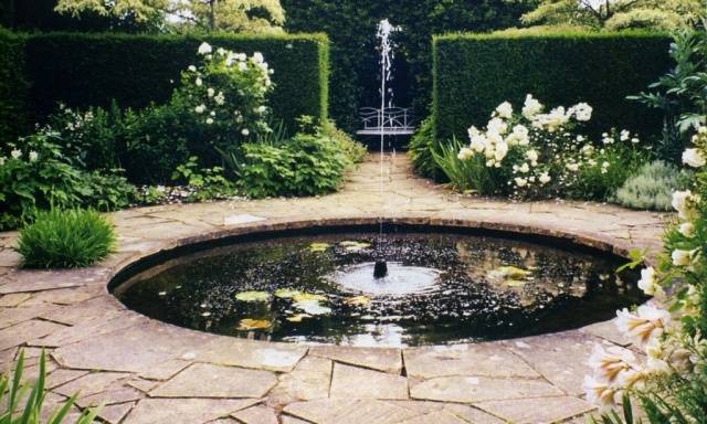 Ένα σιντριβάνι για μια λίμνη στη χώρα μπορεί να έχει αυστηρό τετράγωνο σχήμα ή στρογγυλό. Μπορούν επίσης να είναι οβάλ ή με πολλαπλές γωνίες. Όσον αφορά τις πρόσθετες διακοσμητικές φιγούρες, δεν το χρειάζεται πάντα. Συνήθως θα αρκεί να σημειώνει τα σύνορά του με μια όμορφη πλευρά. Επιπλέον, είναι σημαντικό αυτή η δομή να ταιριάζει όμορφα στο συνολικό σχεδιασμό τοπίου και να ταιριάζει με το στιλ της χώρας.Δηλαδή, εάν το διπλανό σας έδαφος στο εξοχικό σας είναι πολύ μικρό, τότε δεν πρέπει να χτίσετε ένα τεράστιο σιντριβάνι που θα εστιάσει όλη την προσοχή σας στον εαυτό του. Πρέπει να συμπληρώνει ολόκληρη την εικόνα.
