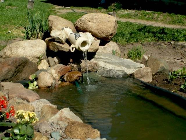 Όσο για το στάσιμο, είναι πολύ πιο δύσκολο να το φτιάξετε. Συνήθως, ένα τέτοιο κτίριο περιλαμβάνει αγάλματα, γλυπτά και κάθε είδους διακοσμητικά στοιχεία. Φυσικά, καθιστώντας το πιο δύσκολο, ωστόσο, οπτικά, θα φαίνεται πολύ πιο εντυπωσιακό από ένα μικρό υποβρύχιο σιντριβάνι στη χώρα.