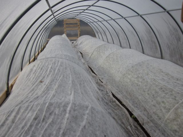 Σε σοβαρούς παγετούς τον Δεκέμβριο, οι κηπουροί καλύπτουν τα πράσινα στο θερμοκήπιο με αγροΐνη