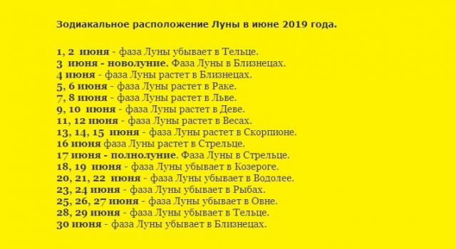 Το σεληνιακό ημερολόγιο του κηπουρού για τον Ιούνιο του 2019 υπολογίζεται λαμβάνοντας υπόψη τη θέση του δορυφόρου σε σχέση με τη Γη. Υπάρχουν ημερομηνίες Ιουνίου που είναι βέλτιστες για προσγείωση και αναχώρηση, κατανέμονται μεταξύ της άνοδος και της πτώσης της Σελήνης. Οι μέρες θα είναι διαφορετικές για τις ρίζες, τα δέντρα και τα λαχανικά που σχηματίζουν φρούτα στο πάνω μέρος του εδάφους.