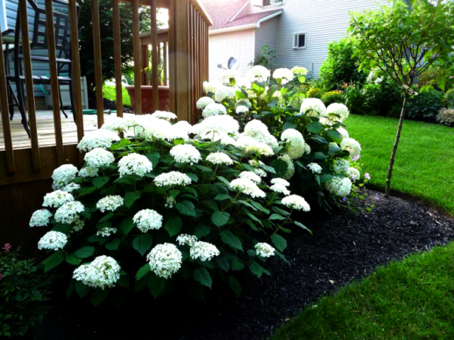 Στον κήπο, δίπλα στη βεράντα και όχι μακριά από την είσοδο του σπιτιού, ένας θάμνος με πλούσιες, μεγάλες ταξιανθίες φαίνεται καλός, για παράδειγμα, το δέντρο ορτανσία Bounty. Παράγει πολλά άσπρα λουλούδια που κυριολεκτικά στρίβουν τον θάμνο που μοιάζει με δέντρο με δυνατούς βλαστούς και μίσχους. Λόγω της υψηλής ανθεκτικότητας του χειμώνα, αυτή η ορτανσία είναι κατάλληλη για καλλιέργεια σε διάφορες περιοχές, συμπεριλαμβανομένων των Ουραλίων και της Σιβηρίας.