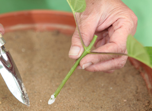 - Μοσχεύματα. Για να το κάνετε αυτό, πρέπει να κόψετε ένα μίσχο με 2 εσωτερικά ενδύματα κατά τη διάρκεια της διόγκωσης των νεφρών. Το κάτω άκρο κόβεται υπό γωνία 45 μοιρών, το άνω άκρο πρέπει να είναι ίσιο. Κατεβάζεται σε δοχείο με μείγμα εδάφους κατά 3 - 4 cm, καλυμμένο σύμφωνα με την αρχή ενός μίνι θερμοκηπίου. 2 μήνες μετά τη ριζοβολία, μπορείτε να φυτέψετε την ορτανσία στο έδαφος.