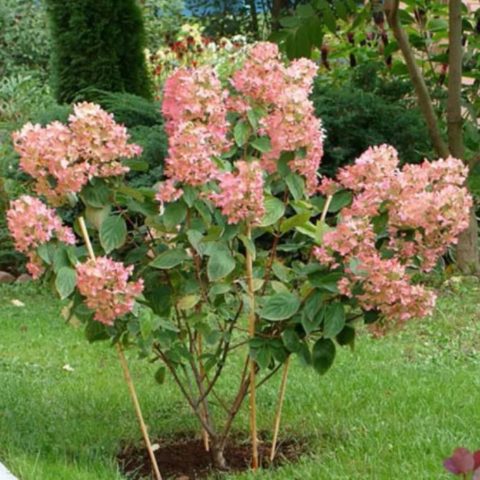 Αρχικά, τα πέταλα είναι βαμμένα σε λευκές και κρεμ αποχρώσεις και προς το τέλος του καλοκαιριού γίνονται έντονα ροζ. Η διακοσμητική αξία της ορτανσίας συνδέεται όχι μόνο με πλούσιες ταξιανθίες, αλλά και με μια μάλλον πυκνή κορώνα. Στο πλούσιο πράσινο φόντο του, τα ελαφριά πέταλα έρχονται σε αντίθεση καλά, χάρη στο οποίο το δέντρο έχει μια πολύ ελκυστική εμφάνιση.