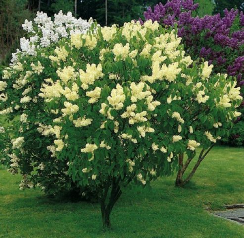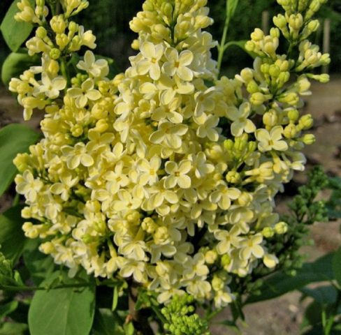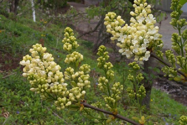Η άνθηση της ποικιλίας ξεκινά στις αρχές Μαΐου. Ήταν εκείνη τη στιγμή που οι ανοιχτό πράσινο μπουμπούκια εμφανίζονται στους θάμνους. Οι ανθισμένες ταξιανθίες αποκτούν ένα ανοιχτό κίτρινο χρώμα και αφού κάψουν στον ήλιο, γίνονται σχεδόν λευκοί. Η ποικιλία ανθίζει μέχρι τα τέλη Ιουνίου. Στο τέλος του καλοκαιριού, επιμήκη φρούτα σχηματίζονται στη θέση των εξασθενισμένων ταξιανθιών. Μοιάζουν με συνηθισμένα κουτιά σπόρων. Ο ανθισμένος θάμνος φαίνεται πολύ εντυπωσιακός τόσο σε μεμονωμένες φυτείες όσο και σε ομαδικές. Στη φωτογραφία υπάρχει μια κίτρινη λιλά κατά την περίοδο ανθοφορίας: