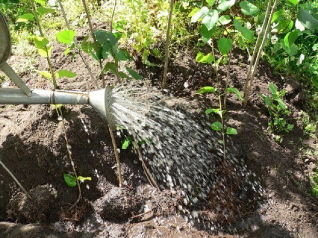Τα πρώτα 2 χρόνια, τα φυτά ποτίζονται 2 φορές την εβδομάδα και στη συνέχεια μειώνεται η ποσότητα. Η κύρια εστίαση είναι στο πότισμα των κίτρινων λιλά τους καλοκαιρινούς μήνες. Θα πρέπει να είναι κανονικό και άφθονο. Μην αφήνετε το έδαφος να στεγνώσει. Ένα φυτό χρειάζεται 2,5-3 κουβάδες νερού. Μετά το πότισμα, συνιστάται η χαλάρωση για τη βελτίωση της πρόσβασης του αέρα στις ρίζες. Αλλά αυτή η διαδικασία είναι αρκετή 3-4 φορές το καλοκαίρι. Χαλάρωση βάθους 4-7 cm.Στα τέλη του καλοκαιριού και στις αρχές του φθινοπώρου (Σεπτέμβριος), οι θάμνοι δεν απαιτούν τόσο υγρασία. Αρκεί να ποτίζετε το φυτό μόνο κατά τη διάρκεια παρατεταμένης ξηρασίας.