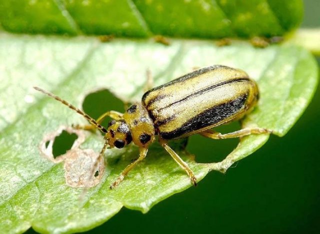 Το σκαθάρι φύλλων Ilm είναι ένα από τα πολλά είδη του γένους των σκαθαριών φύλλων. Αυτό το έντομο έχει δύο φτερά με άκαμπτο έλυτρα και έντονο κίτρινο χρώμα με μαύρες διαμήκεις ρίγες. Το παράσιτο τρέφεται με τα φύλλα των κάστανων, επιπλέον, ώριμα άτομα ροκανίζουν τρύπες σε αυτά, και οι προνύμφες τρώνε πλήρως την πλάκα φύλλων, αφήνοντας μόνο τον σκελετό.