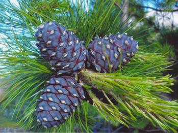 Στις αρχές Σεπτεμβρίου, οι βρώσιμοι κώνοι μωβ-πράσινου μήκους έως 25 cm εμφανίζονται στον πεύκο κέδρου. Οι κώνοι ωριμάζουν τον επόμενο χρόνο μετά την επικονίαση, σχηματίζοντας σπόρους μεγέθους έως 12 mm. Τα ώριμα μπουμπούκια γίνονται σκούρα καφέ.