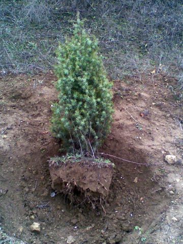 - Το δάσος αρκεύθου φυτεύεται σε ξεχωριστή τρύπα, εάν υπάρχουν πολλά φυτά, μπορείτε να τα τοποθετήσετε σε τάφρο.