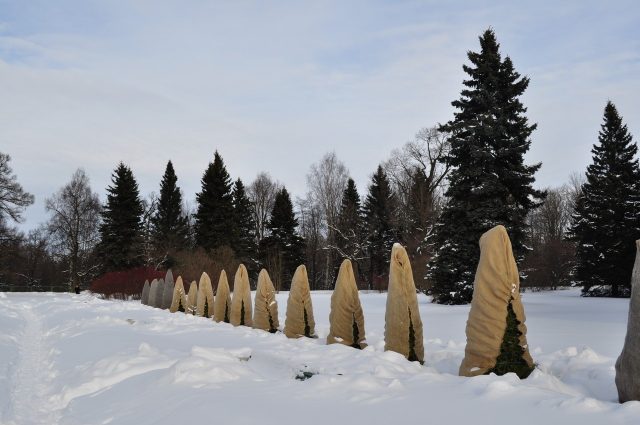 - Τα κλαδιά συλλέγονται σε δέσμη και στερεώνονται σε τέτοια θέση ώστε να μην σπάσουν κάτω από το βάρος του χιονιού.