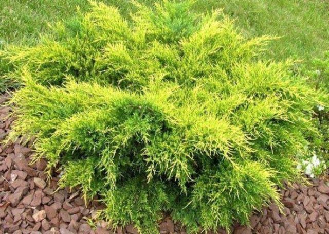 Οι χαμηλής καλλιέργειας άρκευθοι χρησιμοποιούνται για να διακοσμήσουν τις κατώτερες σειρές κωνοφόρων γωνιών με τη συμμετοχή άλλων αειθαλών καλλιεργειών, για παράδειγμα, πεύκα και thuja, πολίτες άλλων ποικιλιών. Όταν φυτεύετε ένα νεαρό φυτό σε ανοιχτό έδαφος, θα πρέπει να λάβετε υπόψη την αύξηση της διαμέτρου της κορώνας του Old Gold Juniper κατά 2,5-3 m.