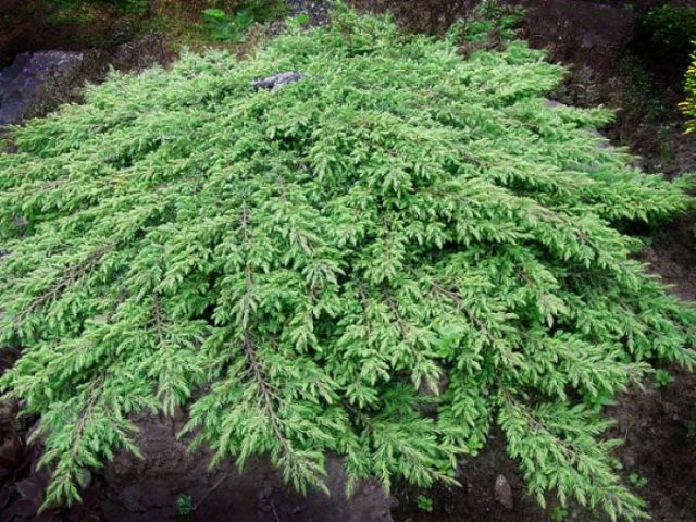 - Καταθλιπτική Είναι ένας αειθαλής κωνοφόρος θάμνος ύψους 0,3 μ. Και πλάτους 1,5 μ. Το φυτό έχει όμορφες χρυσές βελόνες. Οι νεαροί βλαστοί είναι φωτεινοί κίτρινοι · μέχρι το χειμώνα γίνονται καφέ. Ο Juniper λατρεύει τα φωτισμένα μέρη ή την αδύναμη μερική σκιά. Το φυτό είναι ανθεκτικό στον παγετό, δεν απαιτεί από το έδαφος, δεν ανέχεται καλά τον ξηρό αέρα, λατρεύει το ψέκασμα. Συνιστάται να το χρησιμοποιείτε σε βραχώδεις κήπους, βραχόκηπους. Ταιριάζει καλά με φυλλοβόλα και κωνοφόρα φυτά.