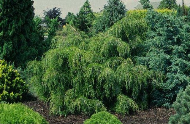 Τα νεαρά μούρα κώνου μπορούν να ταυτιστούν με το ανοιχτό πράσινο χρώμα τους, ενώ τα ώριμα μούρα αποκτούν μια μπλε απόχρωση με μια γαλάζια κεριά άνθιση. Ο βέλτιστος τόπος φύτευσης για ένα φυτό είναι ηλιόλουστα μέρη με μικρή πρόσβαση στη σκιά. Βλασταίνει καλά σε γόνιμο έδαφος που αναπνέει χωρίς υγρασία. Χρησιμοποιείται ενεργά για τη δημιουργία μονάδων ή ομαδικών φυτεύσεων σε πάρκα, πλατείες και κήπους. Συχνά, η ποικιλία Pendula μπορεί να βρεθεί ως φράκτης.