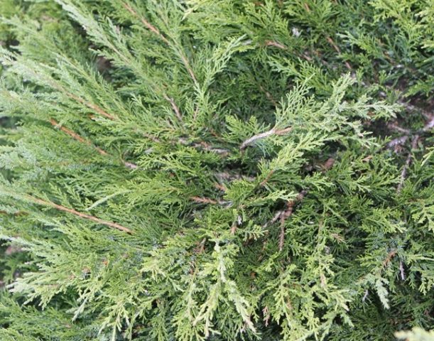Το δέντρο χαρακτηρίζεται από μικρές βελόνες σε σχήμα βελόνας ή φολιδωτές (μήκους 1 - 2 mm). Το χρώμα των βελόνων κυμαίνεται ανάμεσα σε σκούρες πράσινες και γκρι-πράσινες αποχρώσεις, και το χειμώνα το κάλυμμα του φυτού παίρνει καφέ χρώμα.