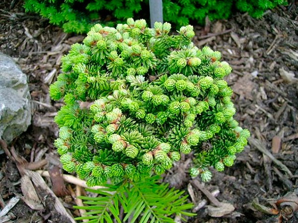 Ο πιο διαδεδομένος και δημοφιλής τύπος διακοσμητικού ξύλου, που βρίσκεται συχνά στη Ρωσία. Η ποικιλία αναπτύχθηκε στην Κορέα. Η ανάπτυξη του φυτού σταματά στα 0,5 μ. Το σφαιρικό σχήμα του δέντρου ταιριάζει απόλυτα στο μοντέρνο στυλ του τοπίου. Ευνοϊκό μέρος για βαλσαμικές βελόνες Λαμπρή - σκιά ή μερική σκιά, υπό αυτές τις συνθήκες το δέντρο τεντώνεται κατά 4-5 cm ετησίως. Ποτίστε το έλατο 1-2 φορές την εβδομάδα. Το διαμάντι δεν είναι ανθεκτικό στον παγετό, οπότε για το χειμώνα το δέντρο καλύπτεται με σανό και πανί. Η ποικιλία μπορεί να εκτραφεί στο σπίτι με φυτά ή σπόρους.