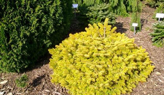 Οι βελόνες είναι επίσης πολύ μικρές, μήκους έως 2 cm. Πάνω έχουν χρυσή κίτρινη απόχρωση, κάτω είναι κιτρινωπό-λευκό. Αυτή η ποικιλία έλατου είναι καλή για τη διακόσμηση αλπικών λόφων στις νότιες περιοχές της χώρας.