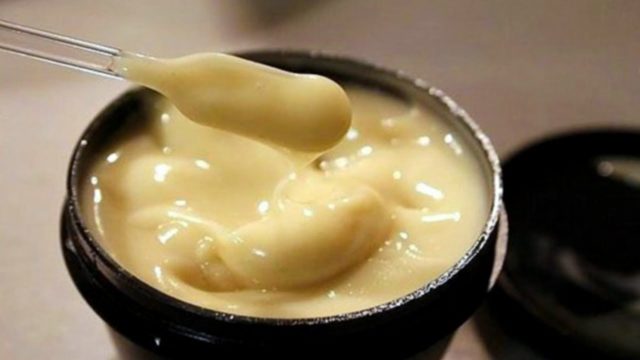 Για να αποκτήσετε μια τόσο υπέροχη κρέμα, θα χρειαστείτε μόνο 50 γραμμάρια φυτικού ελαίου, 7 σταγόνες πυρηνέλαιο και 2 κουταλιές της σούπας. μεγάλο. νέφτι. Ως αποτέλεσμα, έχετε μια μάλλον ιξώδη σύνθεση με την οποία τρίβονται οι φλεγμονώδεις περιοχές. Η διαδικασία πραγματοποιείται το πρωί και το βράδυ κάθε μέρα.