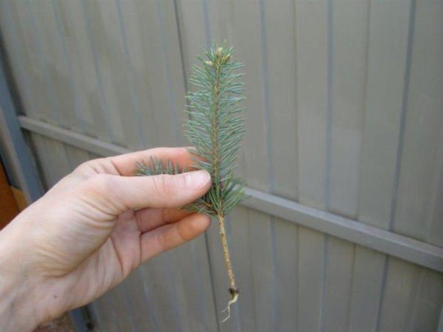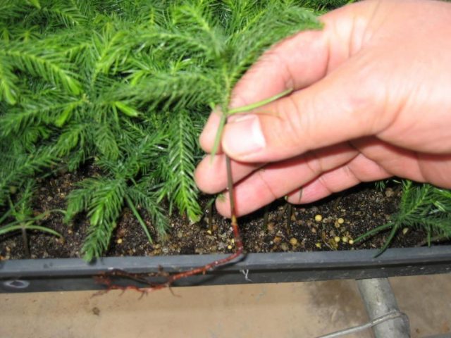 Σε απόσταση 4 - 6 cm, οι βελόνες και τα μικρά κλαδιά αφαιρούνται εντελώς. Υπό ευνοϊκές συνθήκες, νέες ρίζες εμφανίζονται επίσης από αυτά τα μέρη.