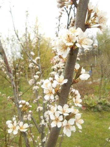 Την άνοιξη, οι ετήσιοι βλαστοί του ρωσικού δαμάσκηνου Λάμα είναι διακοσμημένοι με χαριτωμένα μπουκέτα στο μεσαίο και κάτω μέρος. Τα άνθη είναι μικρά, πλάτους 3-3,5 cm, με λευκά-ροζ πέταλα, προσαρτημένα σε διάφορα κομμάτια σε κλαδιά με κοντό μπουκέτο.