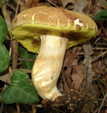Το πόδι είναι παχύ, με τη μορφή μεγάλου κώνου, μήκους 15-17 εκ. Η δομή είναι πυκνή, συμπαγής και μαλακή. Η επιφάνεια είναι μπεζ με καφέ, αραιά τοποθετημένες μικρές ρίγες, πλέγμα. Εάν το μανιτάρι μεγαλώνει σε ανοιχτή περιοχή, το στέλεχος είναι λευκό.