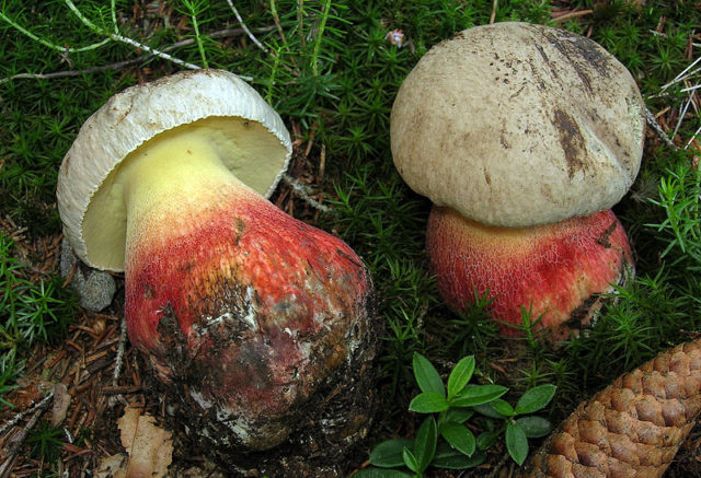Ο Boletus με ένα εκφραστικό όνομα έχει εξωτερική ομοιότητα με έναν πόνο ρίζας. Και οι δύο ποικιλίες έχουν πόδια παρόμοια σε σχήμα και μέγεθος, κυρτά ημισφαιρικά καπάκια με ελαφρώς κυρτές άκρες και λείο δέρμα.