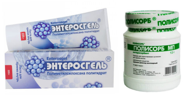 - Παίρνουν προσροφητικά φάρμακα που απορροφούν και εξουδετερώνουν τοξικές ενώσεις: εντεροσέλ, πολυσορβικό, λευκό ή ενεργό άνθρακα.