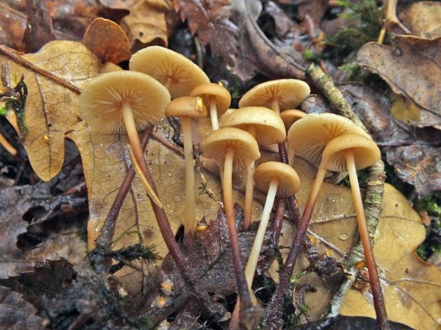 Το πόδι είναι ελαφρώς κυρτό, φτάνει τα 8 cm και έχει κρεμώδη σκιά στην κορυφή. Στο κάτω μέρος, αντικαθίσταται από ένα σκούρο καφέ χρώμα. Αυτό το μέρος του ποδιού είναι συμπαγές, με ένα λευκό χνούδι στη βάση, περνώντας μέσα στο μυκήλιο.