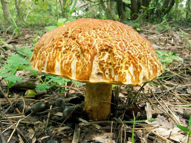 Το καπάκι είναι πρώτα σφαιρικό, έπειτα σε σχήμα μαξιλαριού, κυρτό. Το χρώμα είναι καφέ, γίνεται ώχρα-κίτρινο κατά την ανάπτυξη. Στην επιφάνεια υπάρχουν ακτινικές ρυτίδες, κατά μήκος της άκρης - τα υπολείμματα του καλύμματος. Το δέρμα είναι καστανό, ανώμαλο, ζαρωμένο, ραγίζει σε ξηρό καιρό. Το μέγεθος του πώματος έχει διάμετρο έως 25 cm.