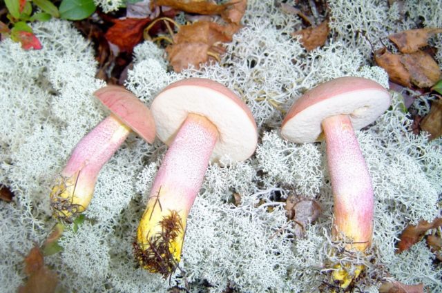 Boletus (obabok) βαμμένο με πόδια... Διαθέτει ροζ καπάκι και κίτρινο πόδι με κοκκινωπό κλίμακες. Εκτός από την Άπω Ανατολή, αναπτύσσεται στην περιοχή της Σιβηρίας. Το καπάκι έχει σχήμα μαξιλαριού, με ευθεία ή κυματιστή άκρη. Το χρώμα είναι άνιση, με κηλίδες κίτρινου, ελιάς και λιλά. Το σωληνοειδές στρώμα είναι πρώτα ανοιχτό ροζ, έπειτα καφέ ή κάστανο. Ο πολτός είναι λευκός, με ελαφριά μυρωδιά μανιταριών.