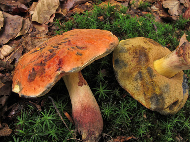 Σε αυτόν τον δηλητηριώδη αντιπρόσωπο, η σάρκα στο κόψιμο αρχικά γίνεται μπλε και μετά αρχίζει να γίνεται κόκκινο. Οι πόροι είναι κόκκινοι, στα πόδια υπάρχουν τελείες ή μοτίβο πλέγματος του ίδιου χρώματος. Το καπάκι είναι υπόλευκο ή γκριζοπράσινο.