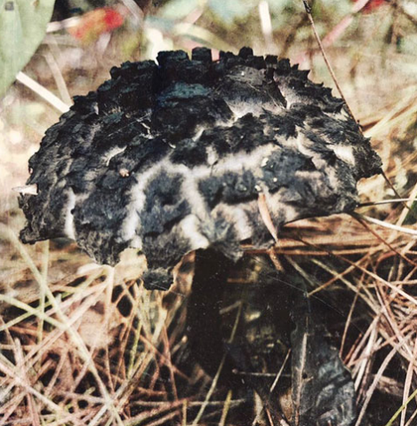 Το κεφάλι του επίφυλου μανιταριού καλύπτεται με κλίμακες που μοιάζουν με κουκουνάρι.
