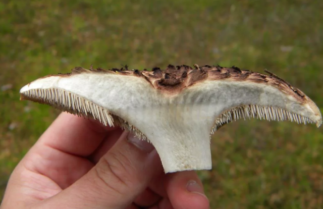 Ένα στρώμα που φέρει σπόρια βρίσκεται στο πίσω μέρος του πώματος. Σε νέους εκπροσώπους είναι λευκό-γκρι, και σε παλιούς είναι σκούρο γκρι. Τα σπόρια έχουν κιτρινωπό χρώμα, μερικές φορές εντελώς ανοιχτό ή άχρωμο. Το στρώμα που φέρει σπόρια είναι όξινο. Αποτελείται από πολλές αιχμές μήκους έως 1 εκ. Όταν πιέζεται με ένα δάχτυλο, οι βελόνες σπάζουν εύκολα.