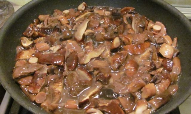 Όταν μαλακώσει το καρποφόρο σώμα των τηγανισμένων μανιταριών, προσθέστε ψιλοκομμένους δακτυλίους κρεμμυδιού στο τηγάνι. Σε αυτό το στάδιο, πρέπει να αλάτισετε το πιάτο. Το τηγάνισμα με ανοιχτό το καπάκι συνεχίζεται έως ότου εξατμιστεί όλος ο χυμός. Εάν το υγρό έχει εξατμιστεί και τα μανιτάρια είναι ακόμη ωμά, καλύψτε το ταψί με καπάκι. Οι τελικές διαφοροποιημένες σαρκοδόνες θα σκουραίνουν ελαφρώς. Ένα ευχάριστο άρωμα μανιταριού θα αρχίσει να προέρχεται από αυτά. Εάν θέλετε, λίγα λεπτά πριν από το τέλος του τηγανίσματος, ξινή κρέμα μπορεί να προστεθεί στους σιδηρουργούς.