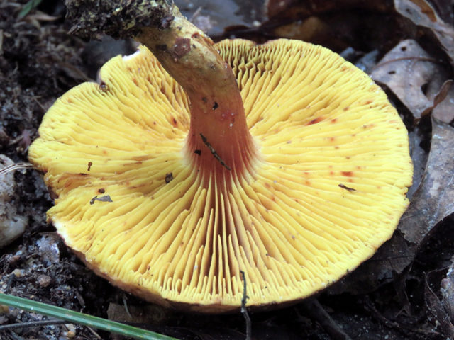 Ο υμνοφόρος σε νεαρά δείγματα είναι έντονος κίτρινος, αλλά στη συνέχεια σκουραίνει σε κόκκινο-πορτοκαλί χρώμα. Οι πλάκες είναι ορατές, έχουν προφανείς γέφυρες.