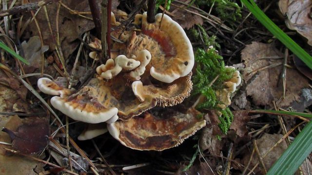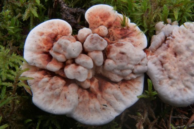 - Hydnellum σκουριασμένο - ανήκει στην ομάδα των μη βρώσιμων μανιταριών.Σε νεαρή ηλικία, το καπάκι έχει σχήμα κλαμπ, αποκτά σταδιακά ένα αντίστροφο κωνικό σχήμα, σε ορισμένες περιπτώσεις μπορεί να είναι επίπεδο ή σε σχήμα χοάνης. Η επιφάνεια είναι βελούδινη, ανώμαλη, στο αρχικό στάδιο ανάπτυξης, ένα υπόλευκο χρώμα, καθώς ωριμάζει, γίνεται ανοιχτόχρωμη σοκολάτα ή σκουριασμένο καφέ.