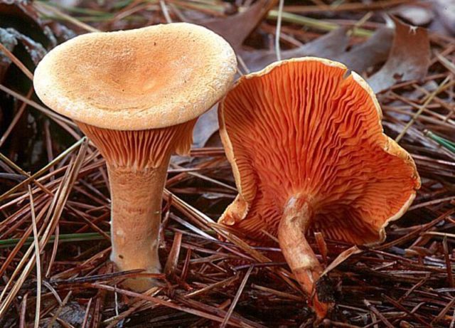 - Κόκκινο chanterelle, που μπορεί να αναγνωριστεί από έντονες ζυγαριές και πιο σκούρο χρώμα στο κεντρικό τμήμα του καπακιού.